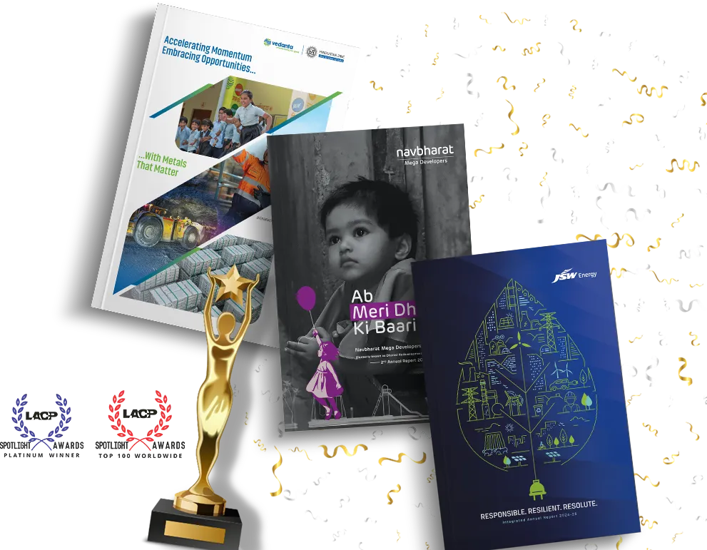 We seamlessly integrate compelling storytelling, research-driven content, and distinctive creativity to deliver standout corporate reports. Our commitment to excellence has consistently garnered global recognition, notably at esteemed platforms such as the League of American Communication Professionals LLC (LACP) and the Asia-Pacific Stevie Awards. Notably, our annual reports have secured positions among the top 100 globally.